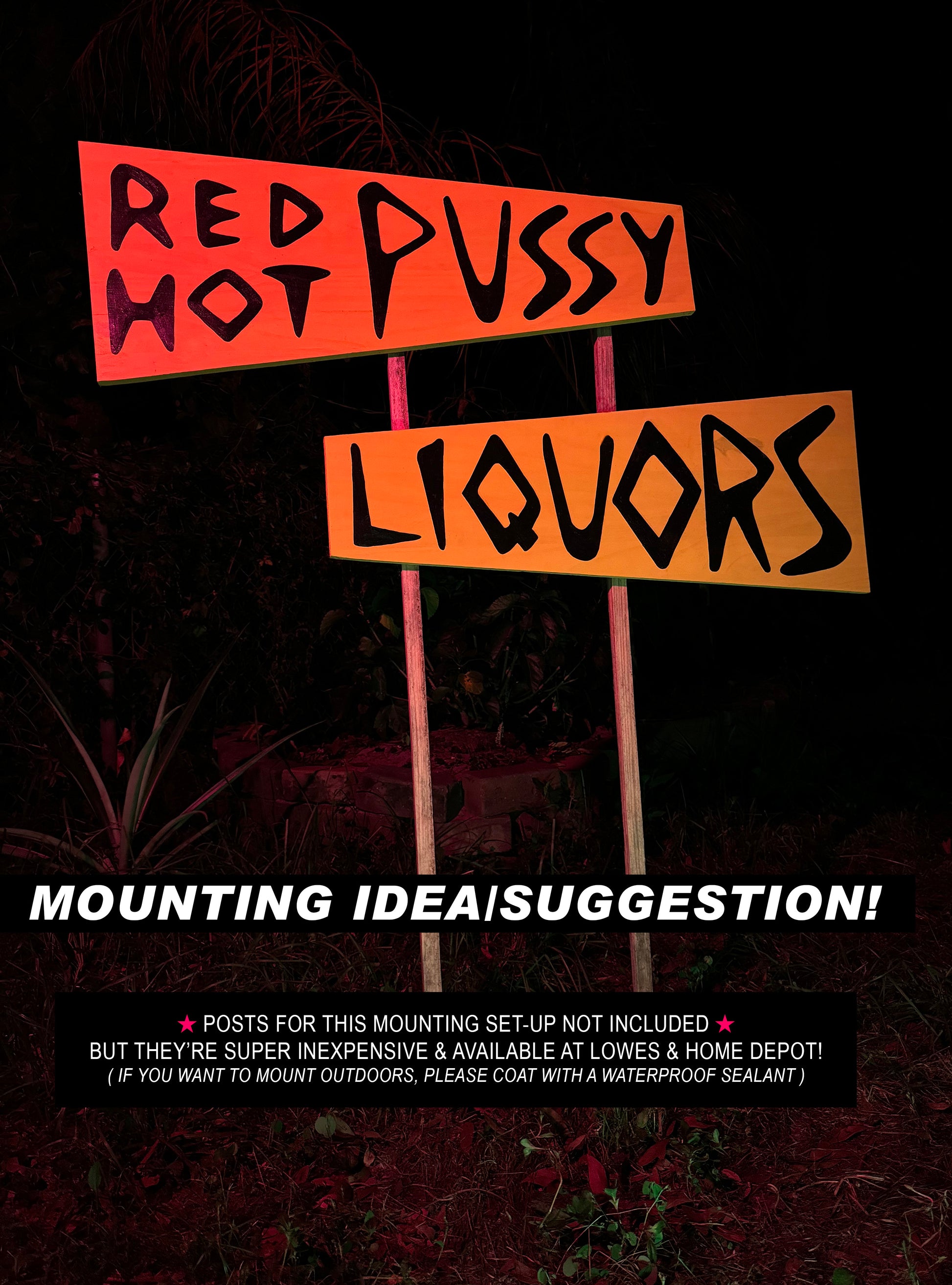 Red Hot Pu$$y Liquors Blacklight Responsive Wooden Sign